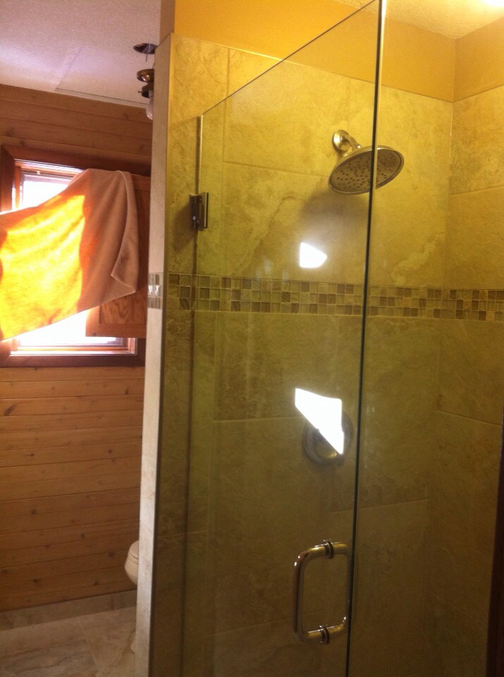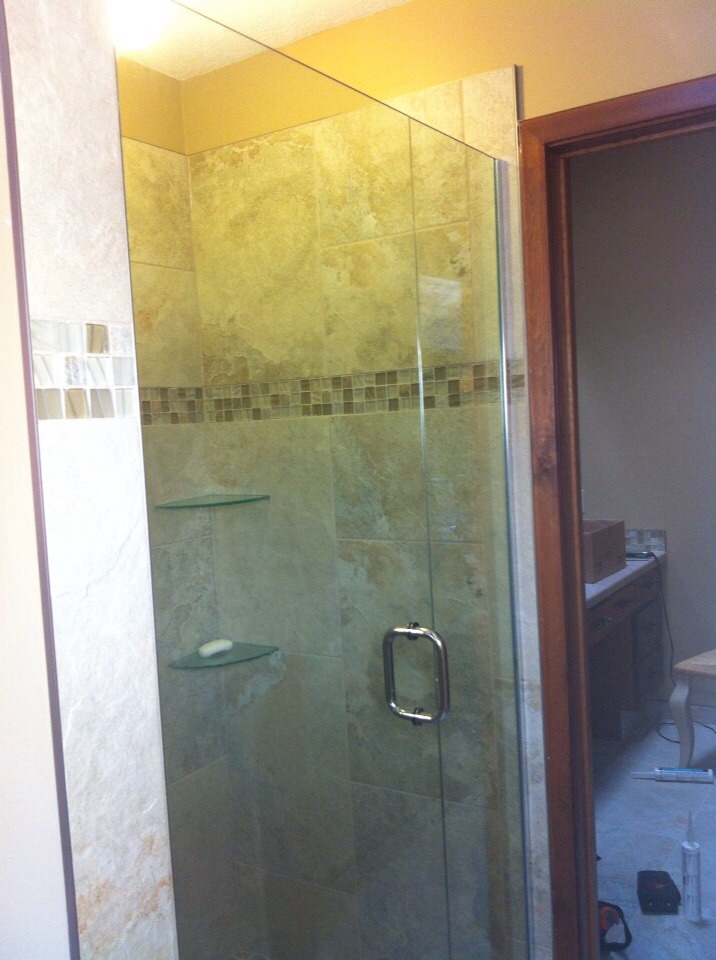 " Hello Jonathan! Just a quick note to say hello and to let you know how much we are enjoying our new bathroom. We want to thank you for the fine job you did with the shower door. We must admit neither Erica or I were sure how it was all going to work out but the door you made fits perfectly and we can tell will last us for as long as we live here. We were really impressed with the way you acted so promptly to complete the job as we had heard of other jobs where there have been significant delays and upset. Not so in your case. You came, sized up the job, gave us a fair price and then went about getting the job done! The workmanship is excellent and you took care to work around our timetable which we appreciated! Also, your checking with us to see all was well after the install was also first class. Please don't hesitate to use us as a reference or have ones interested in using you to fabricate their shower doors give us a call. Thank you again for a job well done and very reasonably priced to boot!
